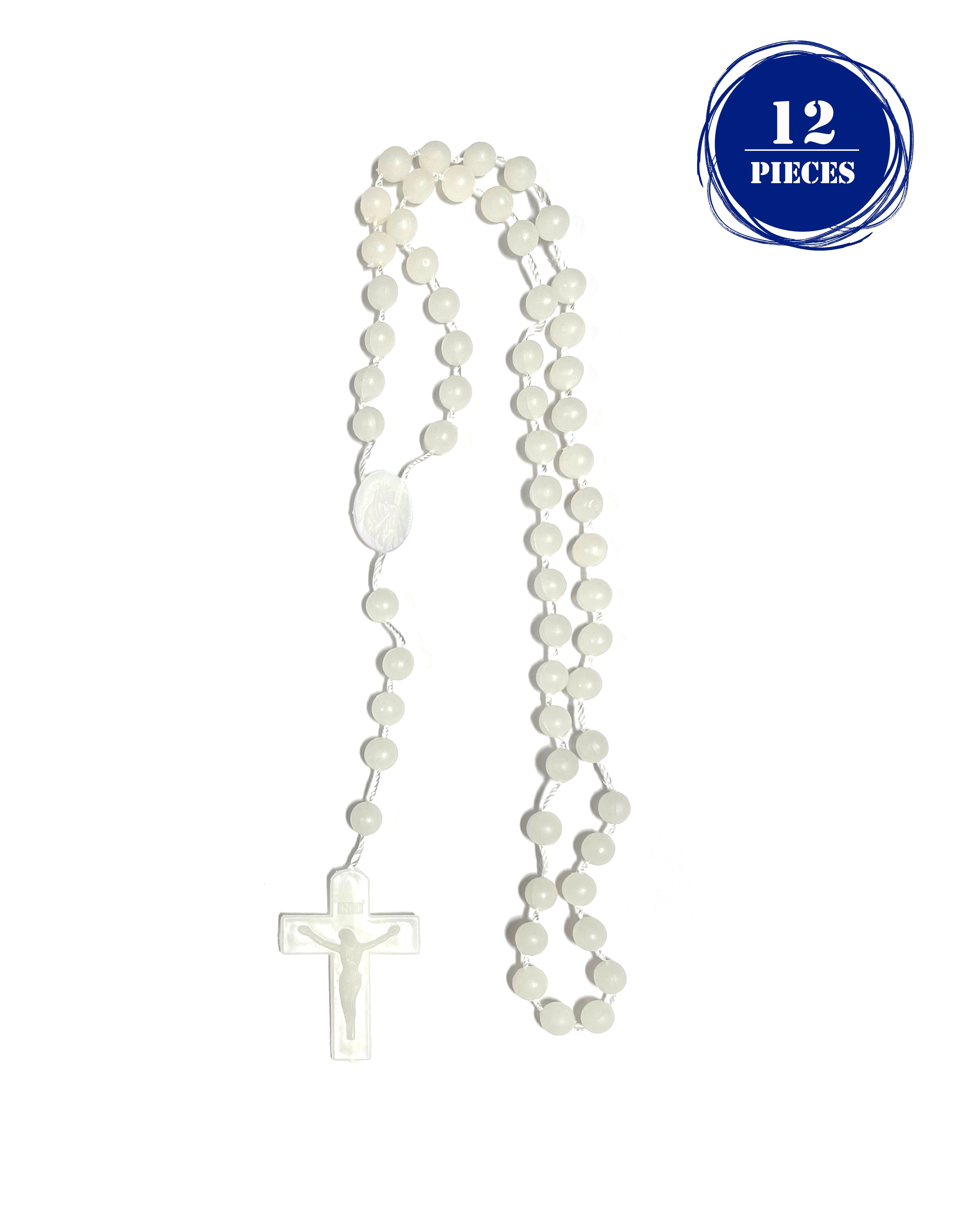 White Glass Bead Guardian Angel Rosary in a Metal Box