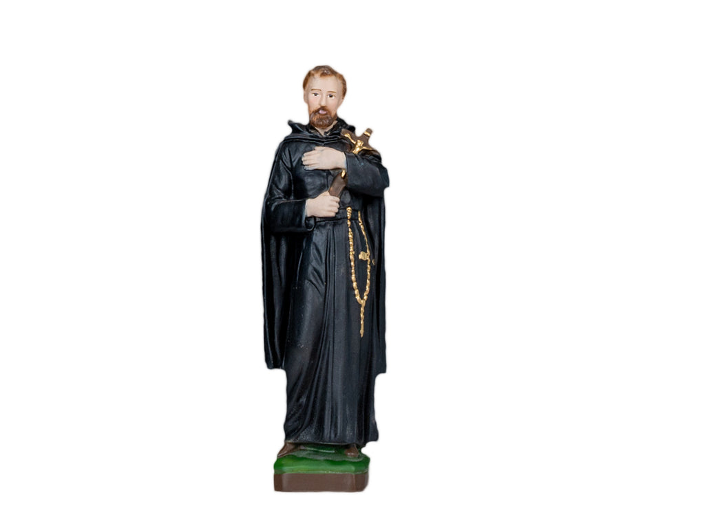 This is our statue of Saint Francis Xavier. San Francisco Javier. Co-founder of the Society of Jesus. Apostle to foreign missions. Feast day 3rd of December. Also known as the Apostle of the Indies. We have the statue produce by our partner shop in Lucca, Italy. It's made in a traditional resin mold with white marble powder, then cleaned and finished by the local artist. Next it's painted on the shop by the ladies that have been working there for many years. This image will make a beautiful gift to any family and home. We are very proud to be able to bring this quality at such a reasonable price. We will include a prayer booklet and a small rosary for you as our gift to this beautiful devotion. Blessings to all the families.