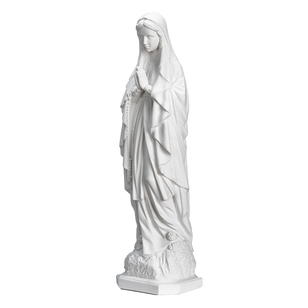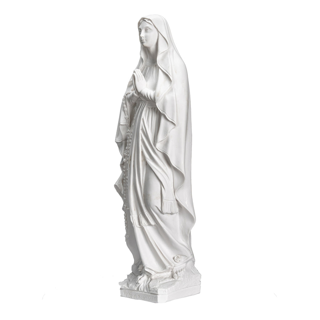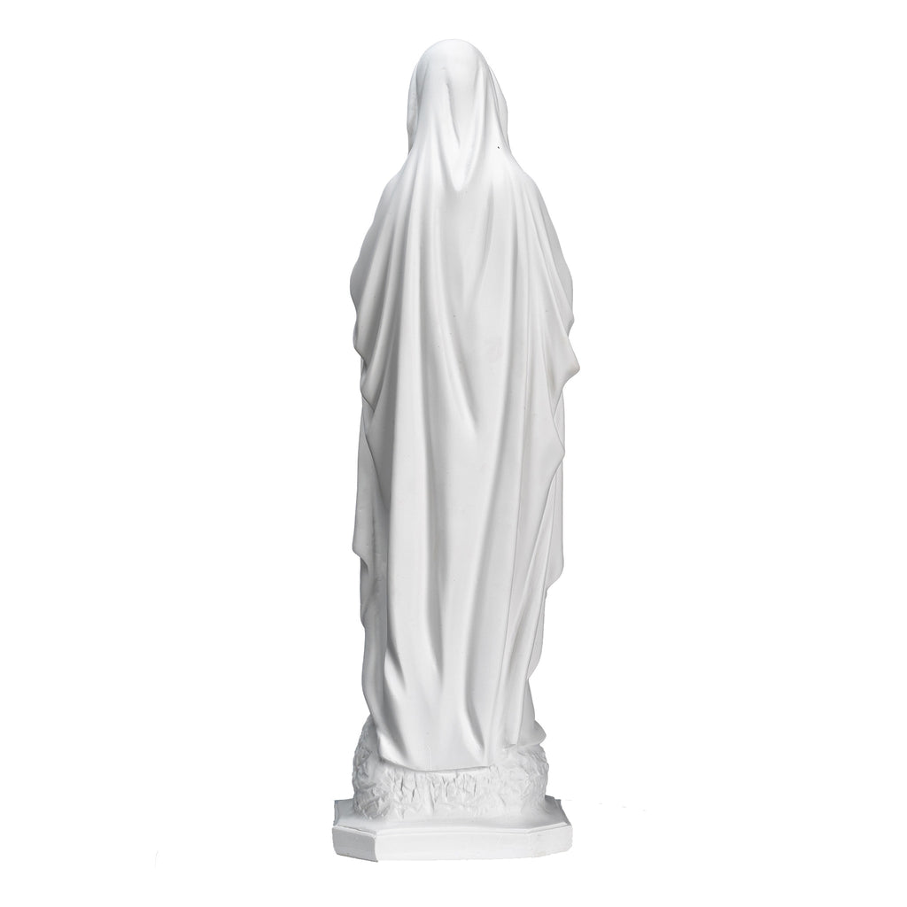 Beautiful White statue of Our Lady Of Lourdes. Nuestra Senora de Lourdes. I had the privilege of visiting last summer this beautiful sanctuary in France. We have the statue produce by our partner shop in Lucca,Italy. It's made in a traditional resin with white marble powder, then cleaned and finish carving by the local artist. This statue its completely white with a clear mate varnish and can be placed outdoors. I shared some pictures of my visit to the sanctuary and to the shop for you. This image will make a beautiful gift to any family and home. We are very proud to be able to bring this quality at such a reasonable price. We will include a prayer booklet and a small rosary for you as our gift to this beautiful devotion. Blessings to all the families.