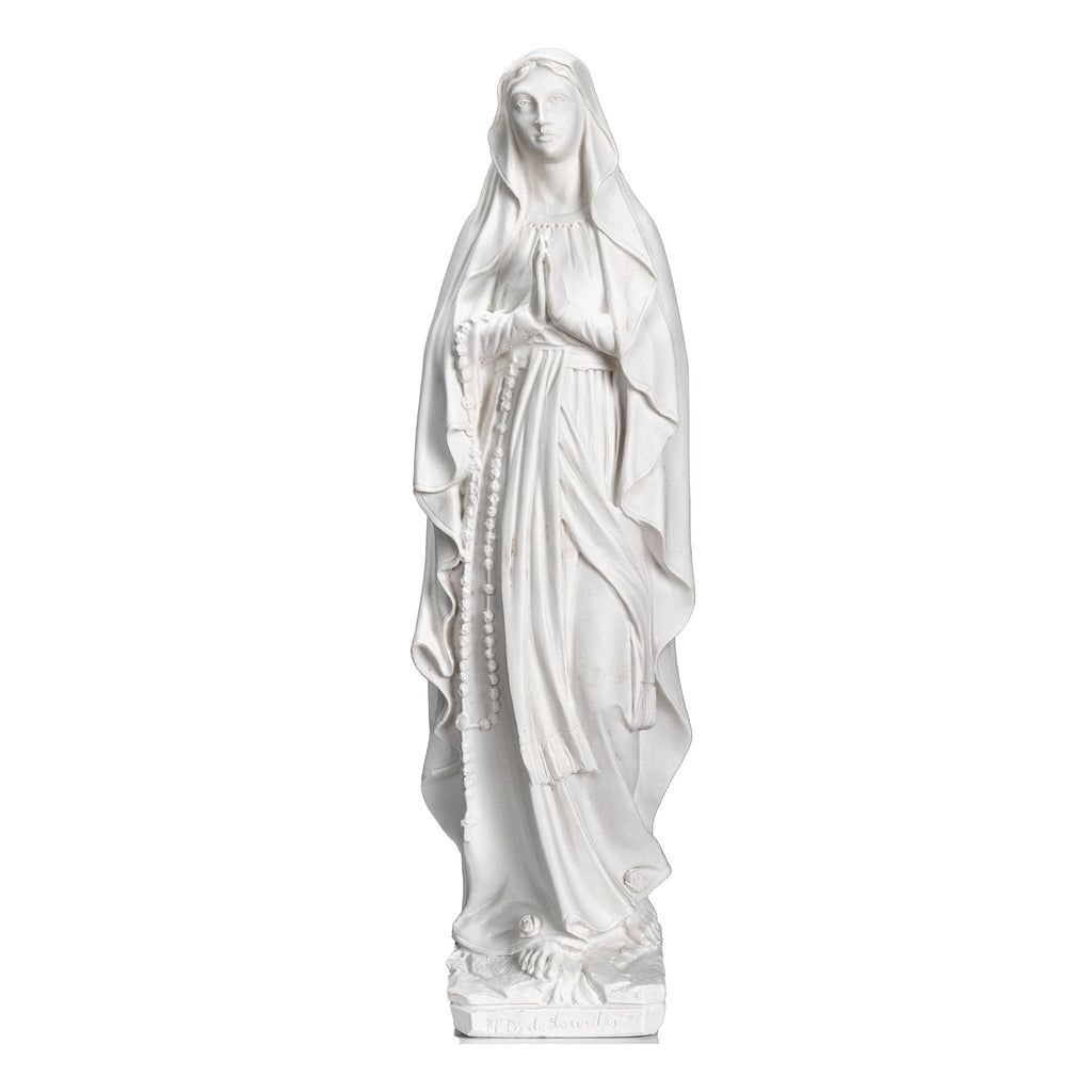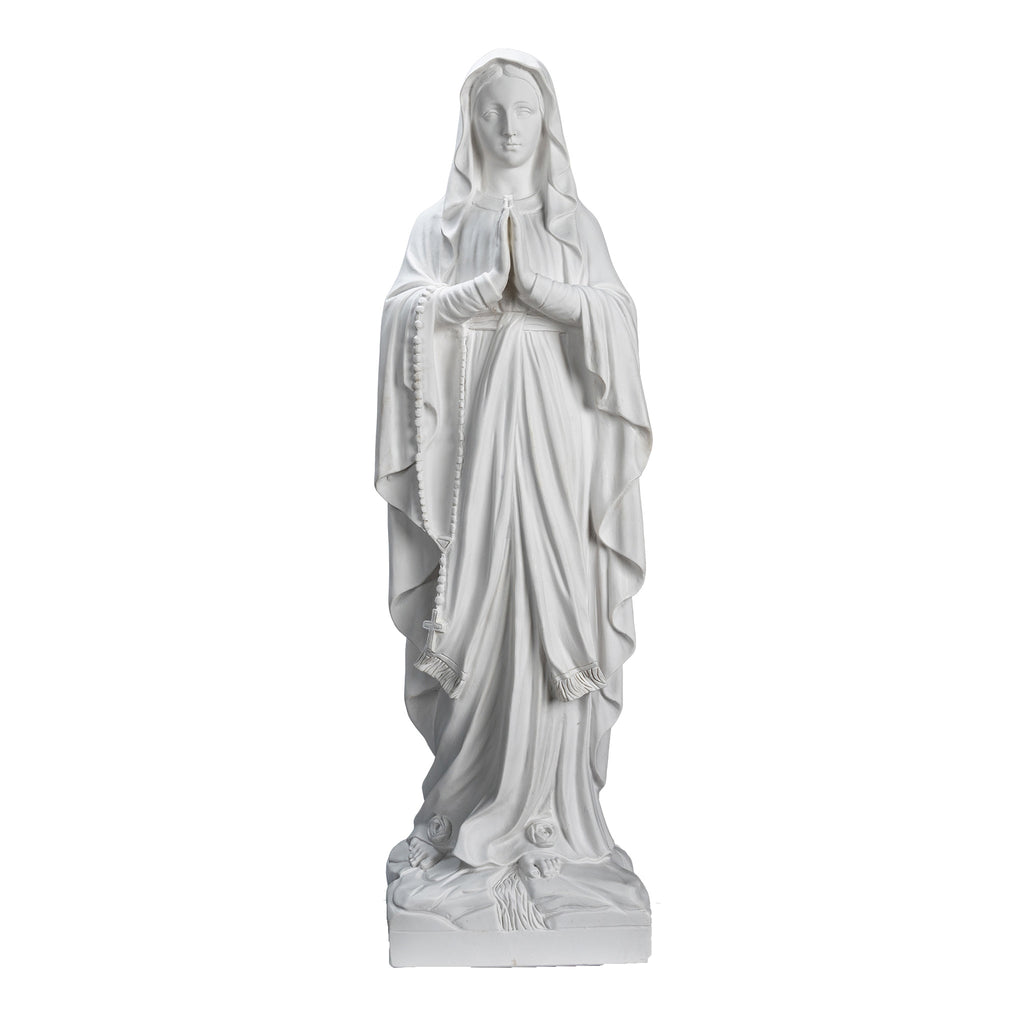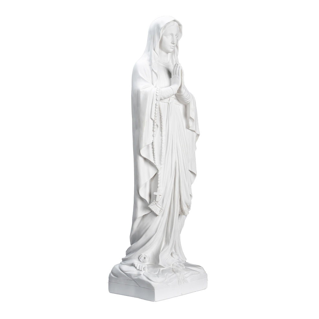 Beautiful White statue of Our Lady Of Lourdes. Nuestra Senora de Lourdes. I had the privilege of visiting last summer this beautiful sanctuary in France. We have the statue produce by our partner shop in Lucca,Italy. It's made in a traditional resin with white marble powder, then cleaned and finish carving by the local artist. This statue its completely white with a clear mate varnish and can be placed outdoors. I shared some pictures of my visit to the sanctuary and to the shop for you. This image will make a beautiful gift to any family and home. We are very proud to be able to bring this quality at such a reasonable price. We will include a prayer booklet and a small rosary for you as our gift to this beautiful devotion. Blessings to all the families.