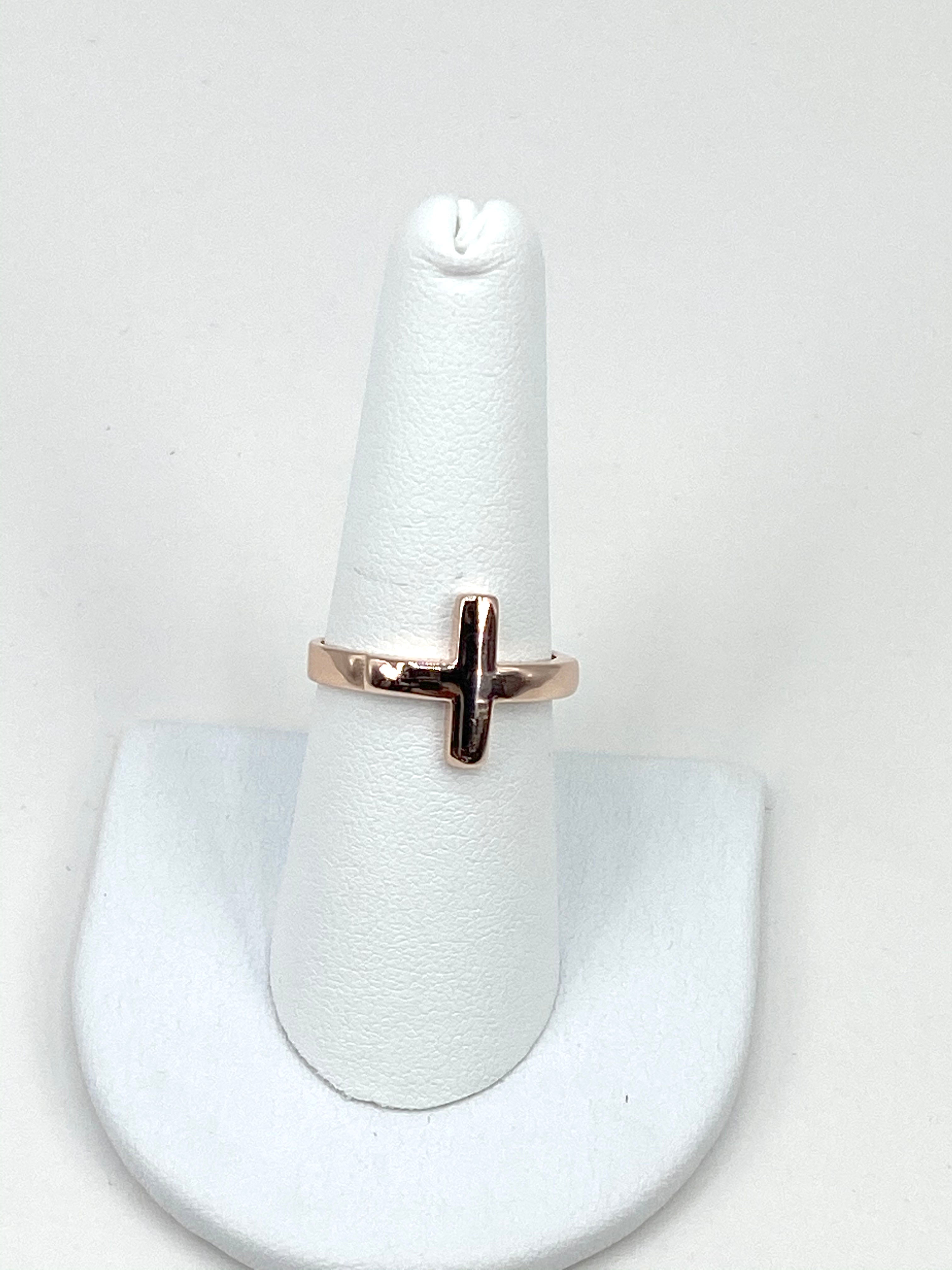 Cross Ring Sterling Silver 925 Silver - Plated Beaded Shank