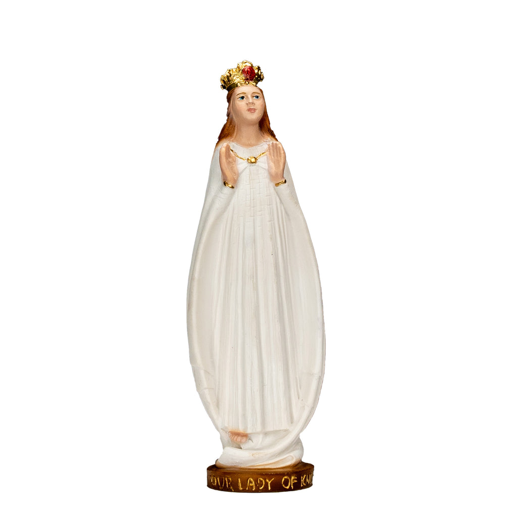 These are our beautiful statues of Our Lady of Knock representing the apparition of the Blessed Virgin Mary along with Saint Joseph, and Saint John the Evangelist in the Village of Knock, Ireland. Today a sanctuary has been built known as Knock Shrine or The Sanctuary of the Lady of Knock. The statue its made on our partner shop in Luca, Italy. The statue its made on a traditional resin with white marble powder, then clean and finish by the local artist. Next its hand painted by the ladies at the shop that have been working there for many years. We are very proud to be able to offer this great hand made quality statue at a very reasonable price. It makes a fantastic gift to any house and family. We will add a gift prayer booklet from us to your order. Many Blessings to all the families.