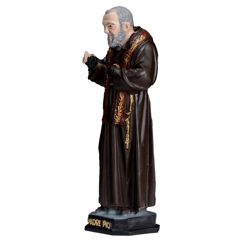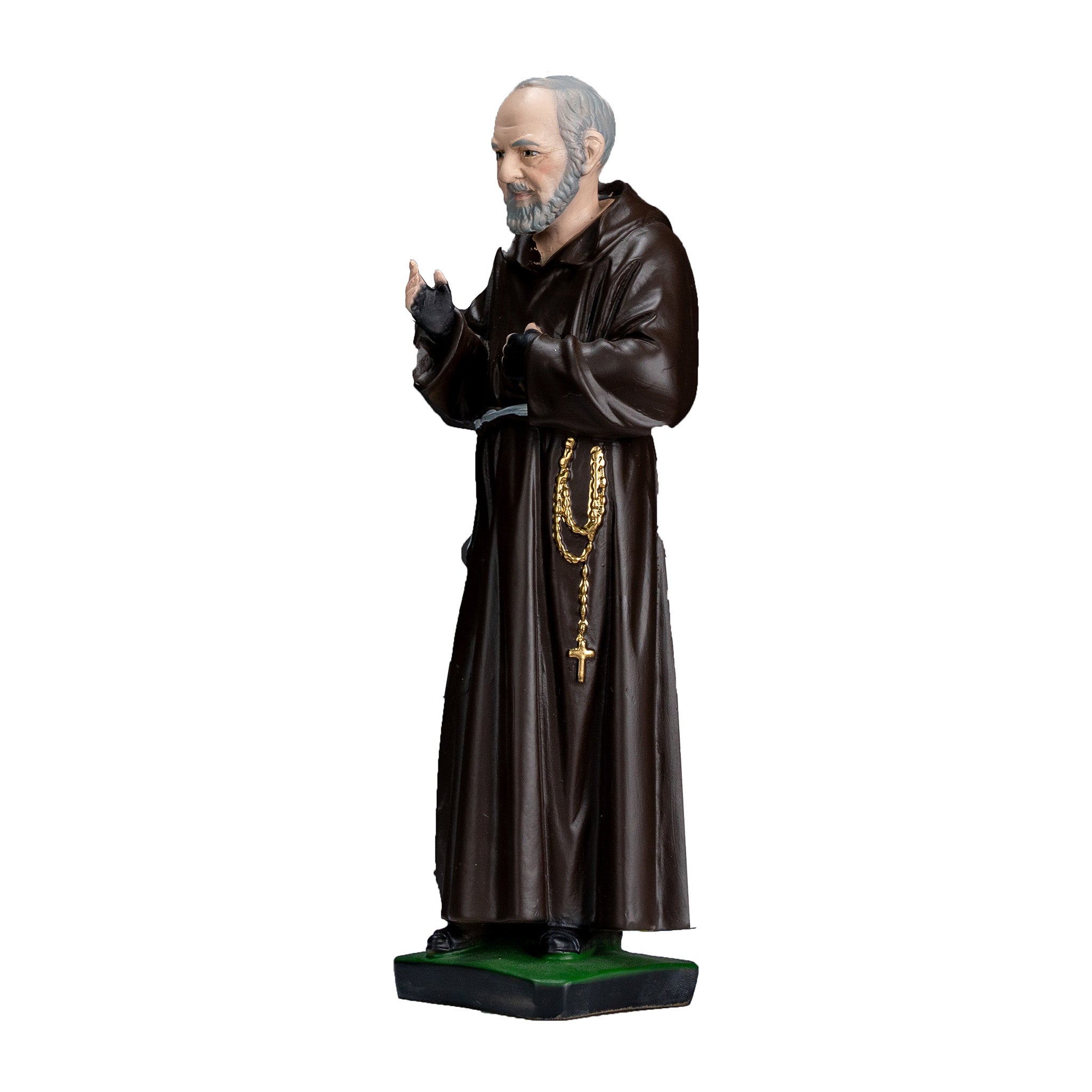 Statue of Padre Pio . The Great saint from San Giovanni Rotondo. A very loved devotion to Padre Pio in the Eastern Shores of Italy. I had the privilege to visit his new sanctuary which receives thousands of pilgrims a year and I highly recommend it. We have the statue produce by our partner shop in Lucca,Italy. It's made in a traditional plaster mold, then cleaned and finished by the local artist. Next it's painted on the shop by the ladies that have been working there for many years. This image will make a beautiful gift to any family and home. We are very proud to be able to bring this quality at such a reasonable price. We will include a prayer booklet and a small rosary for you as our gift to this beautiful devotion. Blessings to all the families. NOTE: There are small differences on the statue between the 6",8" 12", 16" and the 24" look at the pictures of each one to select the one you like the most.