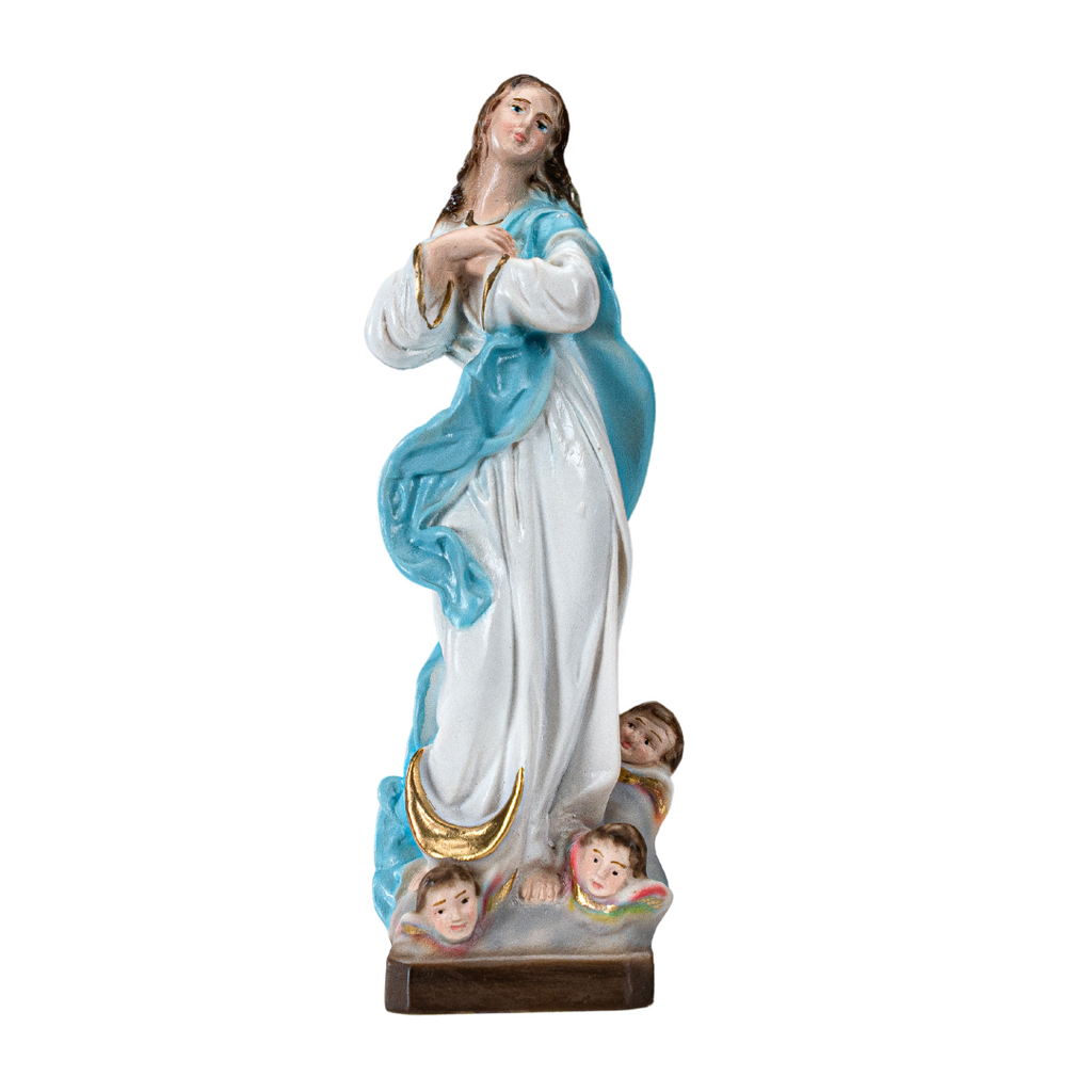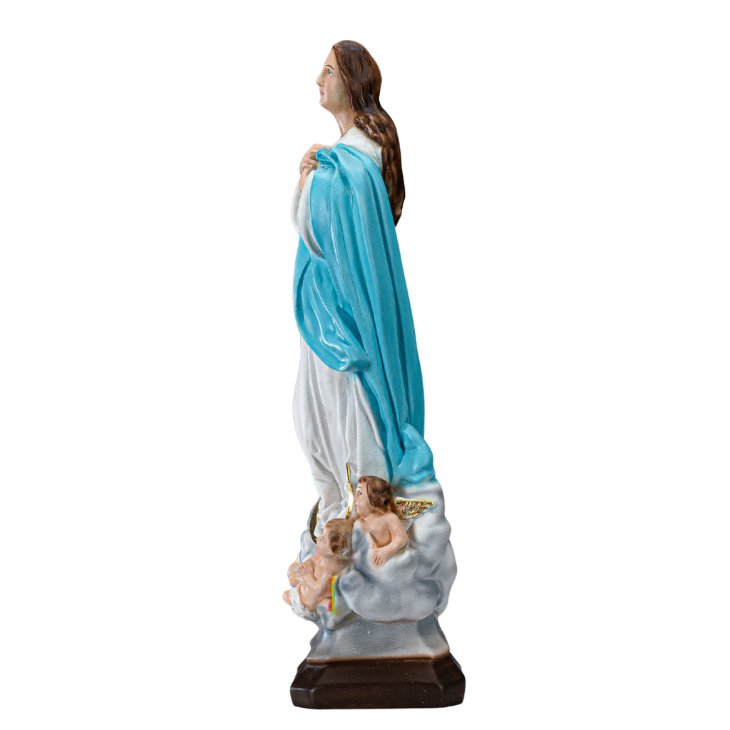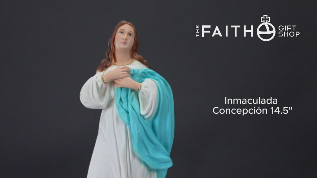 This is our beautiful statues of The Immaculate Conception also know as The Assumption of the Blessed Virgin Maria. The statue its made on our partner shop in Luca, Italy. The statue its made on a traditional resin with white marble powder, then clean and finish by the local artist. Next its hand painted by the ladies at the shop that have been working there for many years. We are very proud to be able to offer this great hand made quality statue at a very reasonable price. It makes a fantastic gift to any house and family. The devotion of the Miraculous Virgin Mary its very strong and much loved all over the world. We will add a gift prayer booklet from us to your order. Many Blessings to all the families.