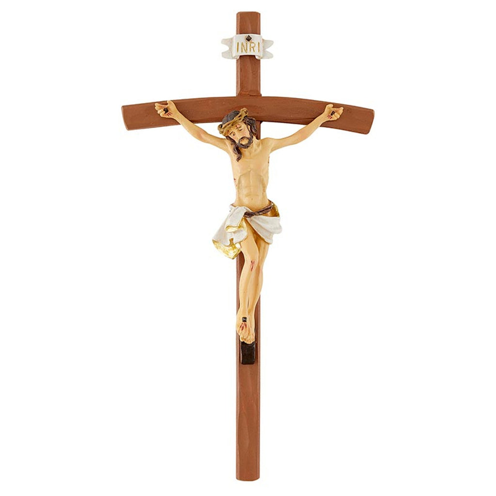 This hammered wood crucifix includes a resin Corpus and is a beautiful statement piece for any home or church.