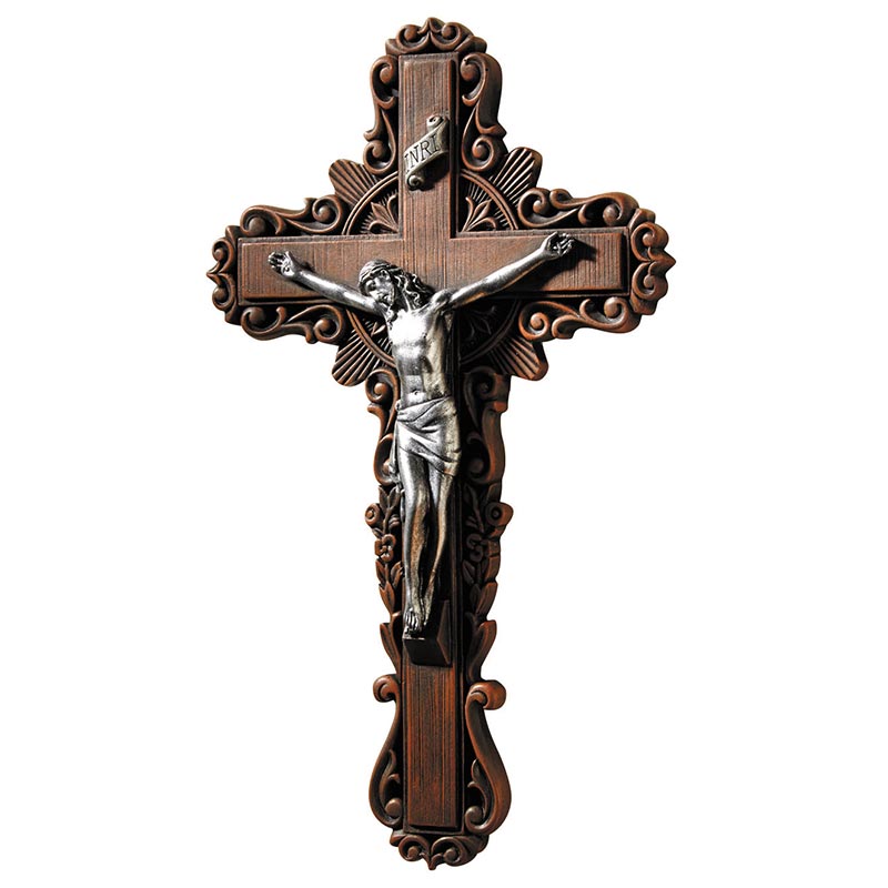 This crucifix features a highly detailed Calvary Pastoral cross and a resin finish corpus.