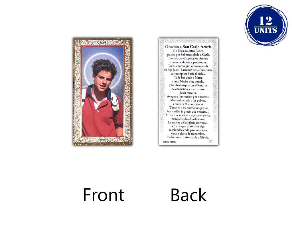 Paquete de 12 estampas Católicas con oración en Español, tamaño 3.5" x 2.0".
