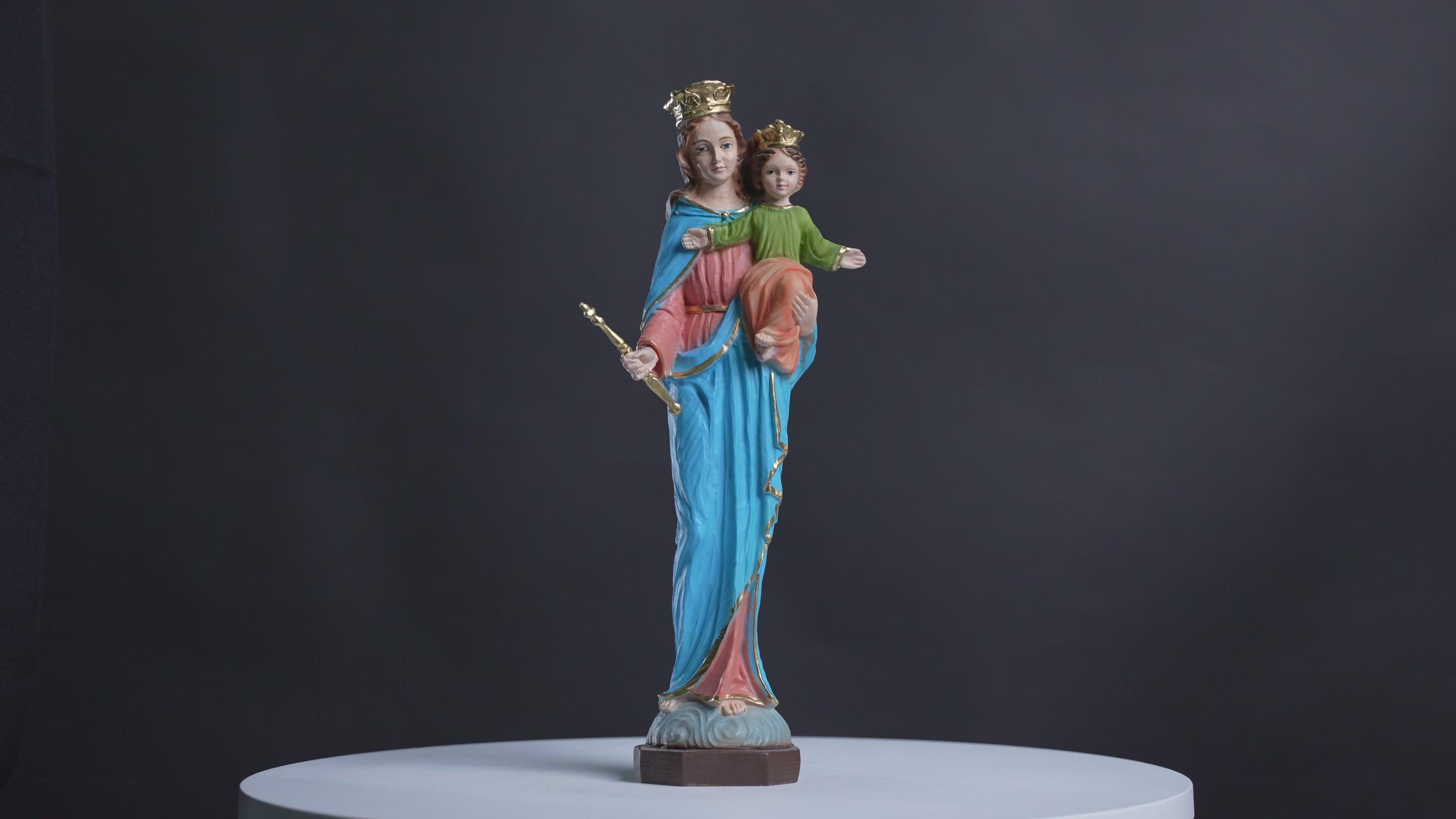 This is our beautiful statue of Mary Help of Christians / Maria Auxiliadora. Also known as Our Lady of Help of Christians.  Its a Marian devotion with a feast of May 24.  The statue its made on our partner shop in Luca, Italy. The statue its made on a traditional plaster mold, then clean and finish by the local artist. Next its hand painted by the ladies at the shop that have been working there for many years. We are very proud to be able to offer this great hand made quality statue at a very reasonable price. It makes a fantastic gift to any house and family. The devotion of the Our Lady of Help of Christians its very strong and much loved all over the world. We will add a gift prayer booklet from us to your order. Many Blessings to all the families.